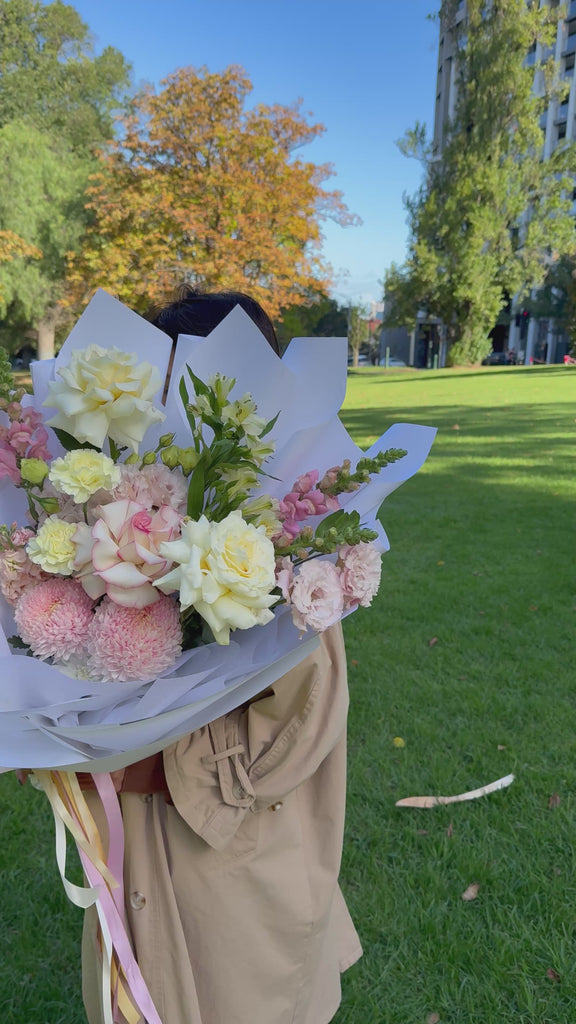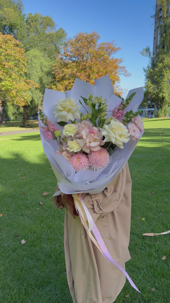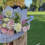 Please note - The images are used as inspiration and we will do our very best to capture the composition of this arrangement. There will be variations in the colours as it is dependant on limited market and seasonal availability. There will also be variations in the placement of the flowers. If you have specific requirements regarding flower selection, please email us directly.