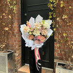 Please note - The images are used as inspiration and we will do our very best to capture the composition of this arrangement. There will be variations in the colours and placement of the flowers as it is dependant on limited market and seasonal availability. If you have specific requirements regarding flower selection, please email us directly.