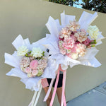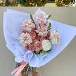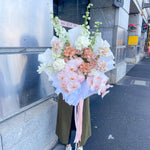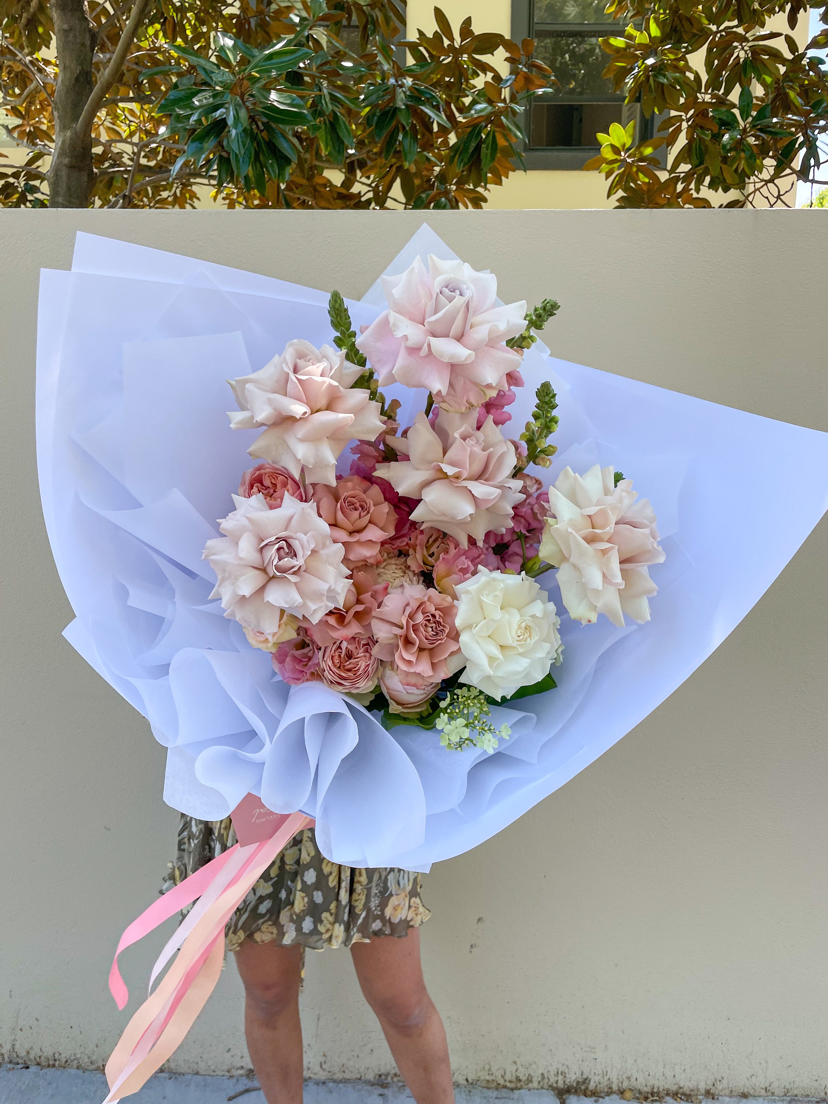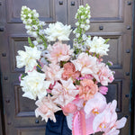 Feeling Floral's signature arrangement features a combination of soft and pretty coloured blooms. Think shades of pinks, blush and white blooms. Orchids are included in Large upwards.