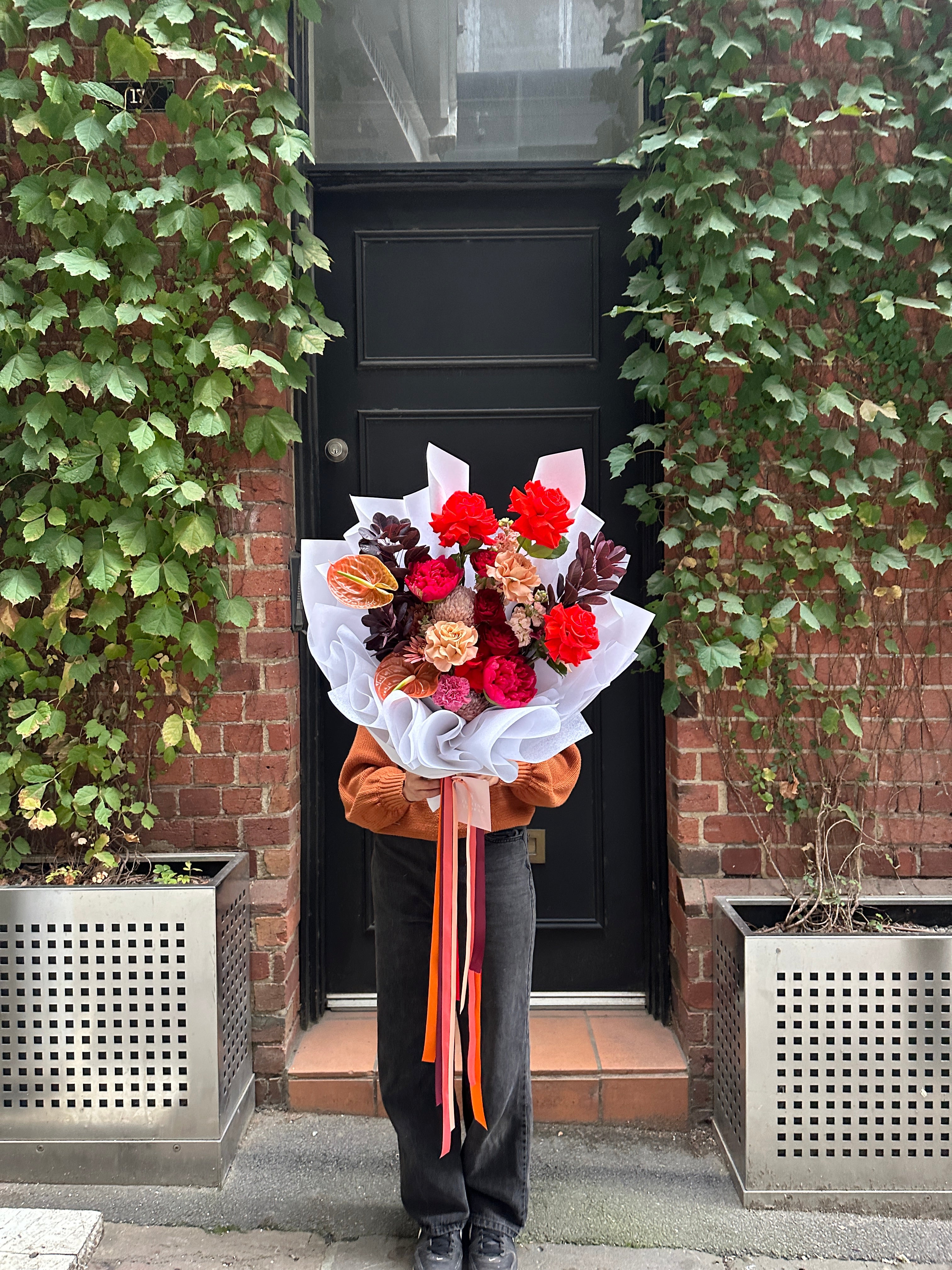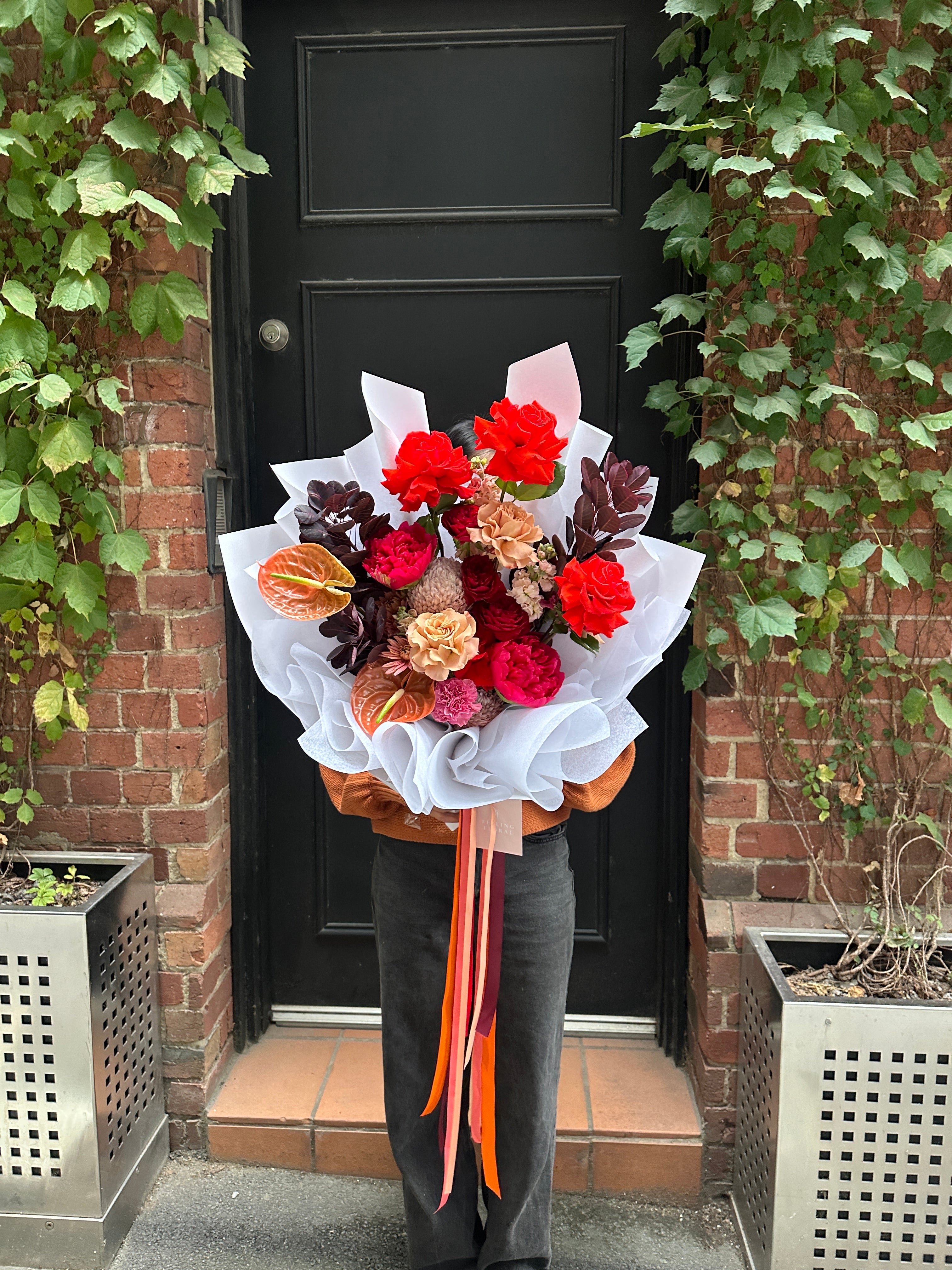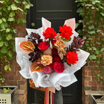 Embrace the essence of autumn with our Autumn Allure bouquet. This beautiful arrangement that captures the rich, warm hues of the season. This exquisite bouquet features a harmonious blend of deep reds, dark moody tones, and earthy browns, evoking the beauty of fall foliage and cozy evenings.