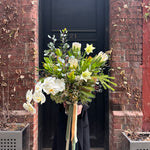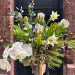 Please note - The images are used as inspiration and we will do our very best to capture the composition of this arrangement. There will be variations in the colours and placement of the flowers as it is dependant on limited market and seasonal availability. If you have specific requirements regarding flower selection, please email us directly.
