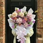 Please note - The images are used as inspiration and we will do our very best to capture the composition of this arrangement. There will be variations in the colours and placement of the flowers as it is dependant on limited market and seasonal availability. If you have specific requirements regarding flower selection, please email us directly.