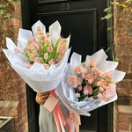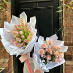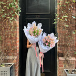 Please note - The images are used as inspiration and we will do our very best to capture the composition of this arrangement. There will be variations in the colours as it is dependant on limited market and seasonal availability. There will also be variations in the placement of the flowers. If you have specific requirements regarding flower selection, please email us directly.