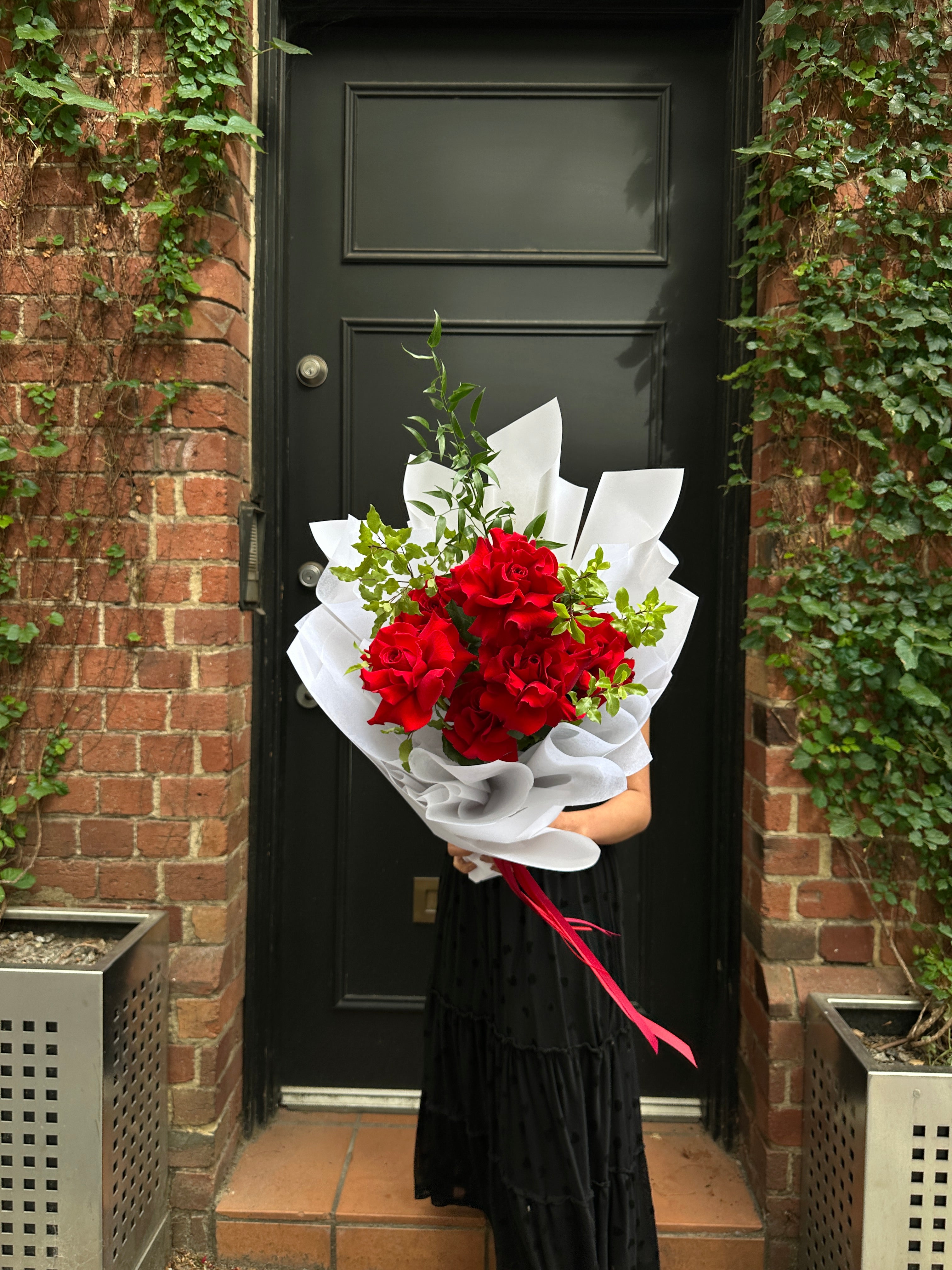 Capture their heart with Amour, Luxurious and classic red, reflexed roses arranged with greenery and foliage. We’ll be mixing roses in varying shades of red, adding depth and vibrancy to the bouquet. Should you require a specific shade of red, please don't hesitate to contact us.